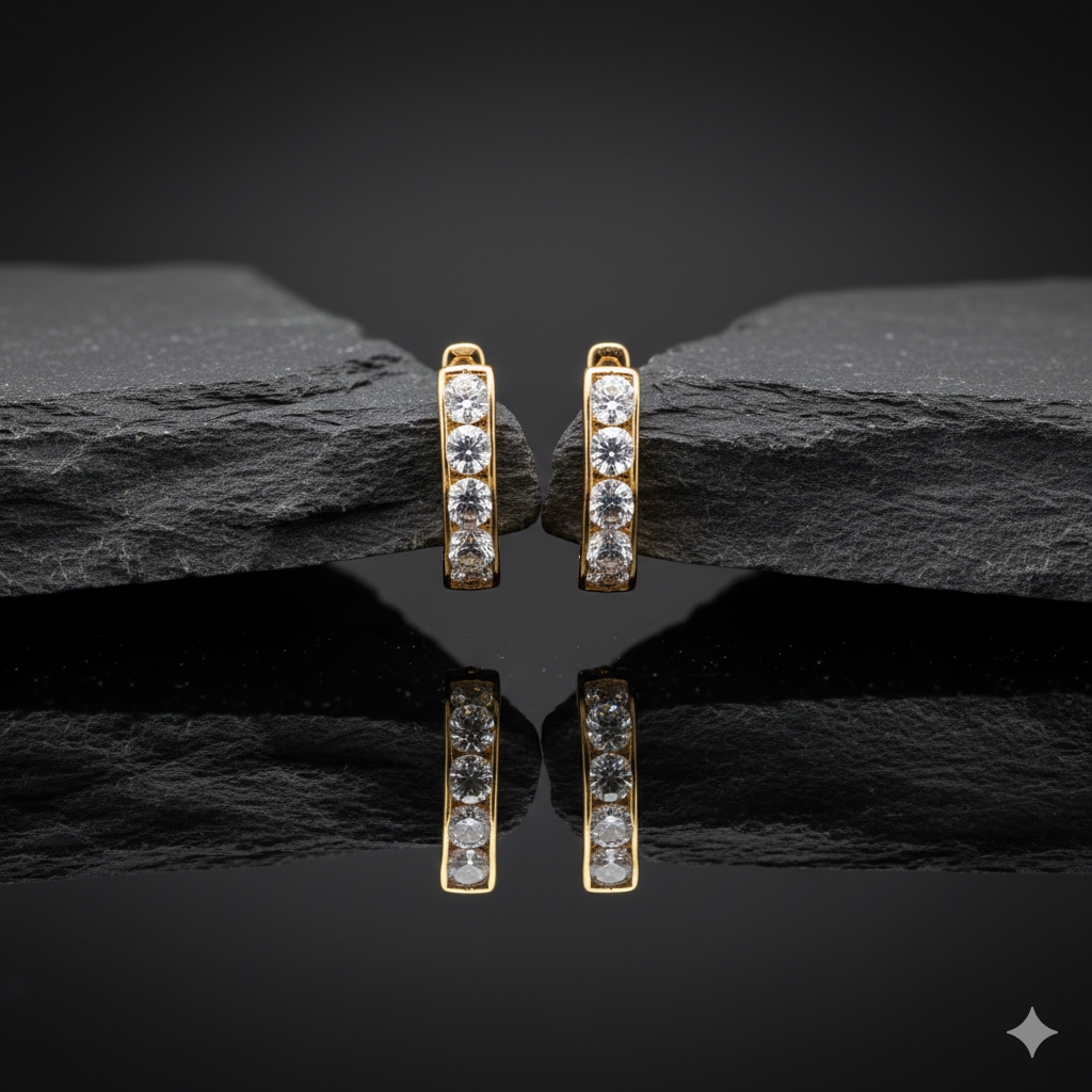 Złote kolczyki z cyrkoniami to subtelna forma biżuterii dziecięcej, która symbolizuje światło, czystość oraz wyjątkowość chwili sakramentu. Delikatny połysk kamieni odbijających światło podkreśla uroczysty charakter Chrztu Świętego lub Roczku.