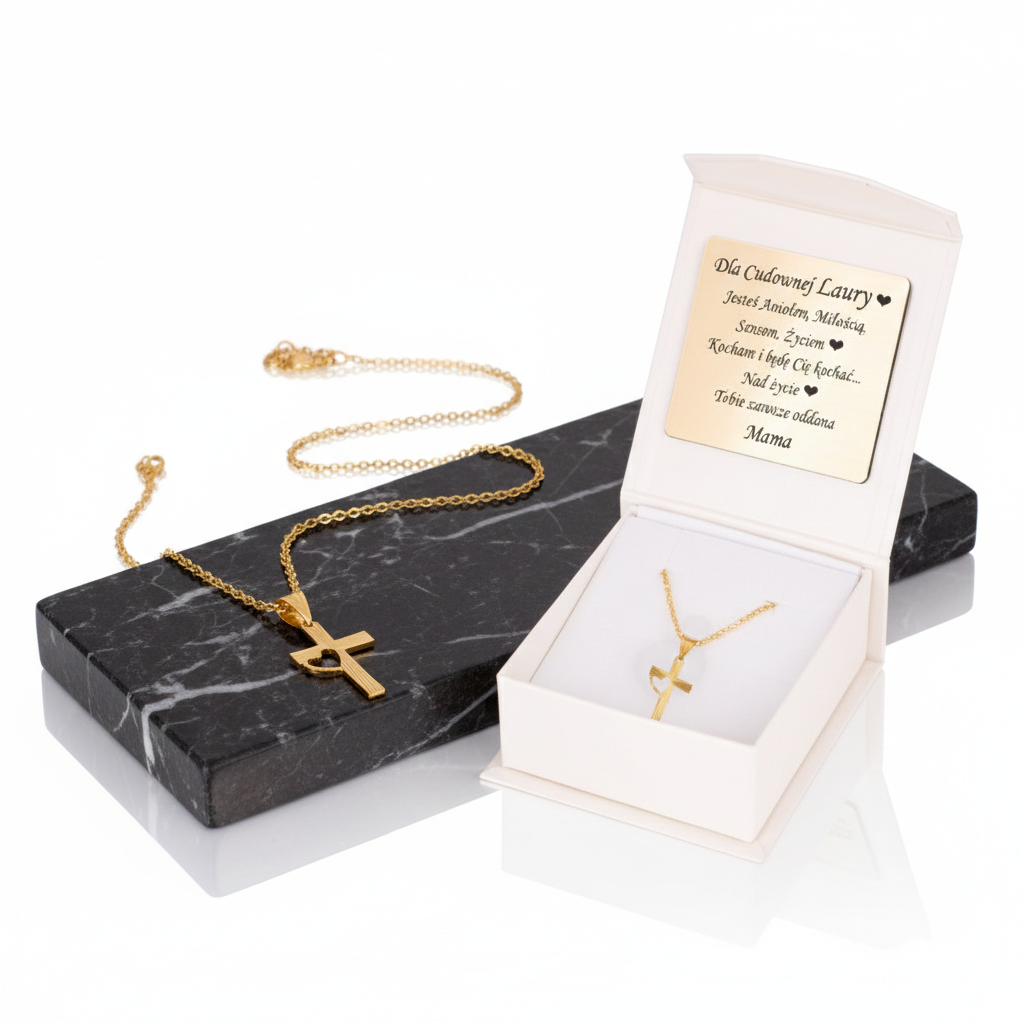 Niech złoty medalik Krzyż & Serce stanie się znakiem wiary, miłości i Bożej opieki.