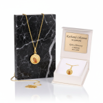 Złoty medalik z wizerunkiem Matki Boskiej, wykonany z żółtego złota próby 585, wyróżnia się ażurową formą oraz delikatnym, emaliowanym wizerunkiem. Komplet z łańcuszkiem, zapakowany w eleganckie pudełeczko z indywidualną dedykacją, stanowi wyjątkową pamiątkę Chrztu Świętego lub Pierwszej Komunii Świętej.