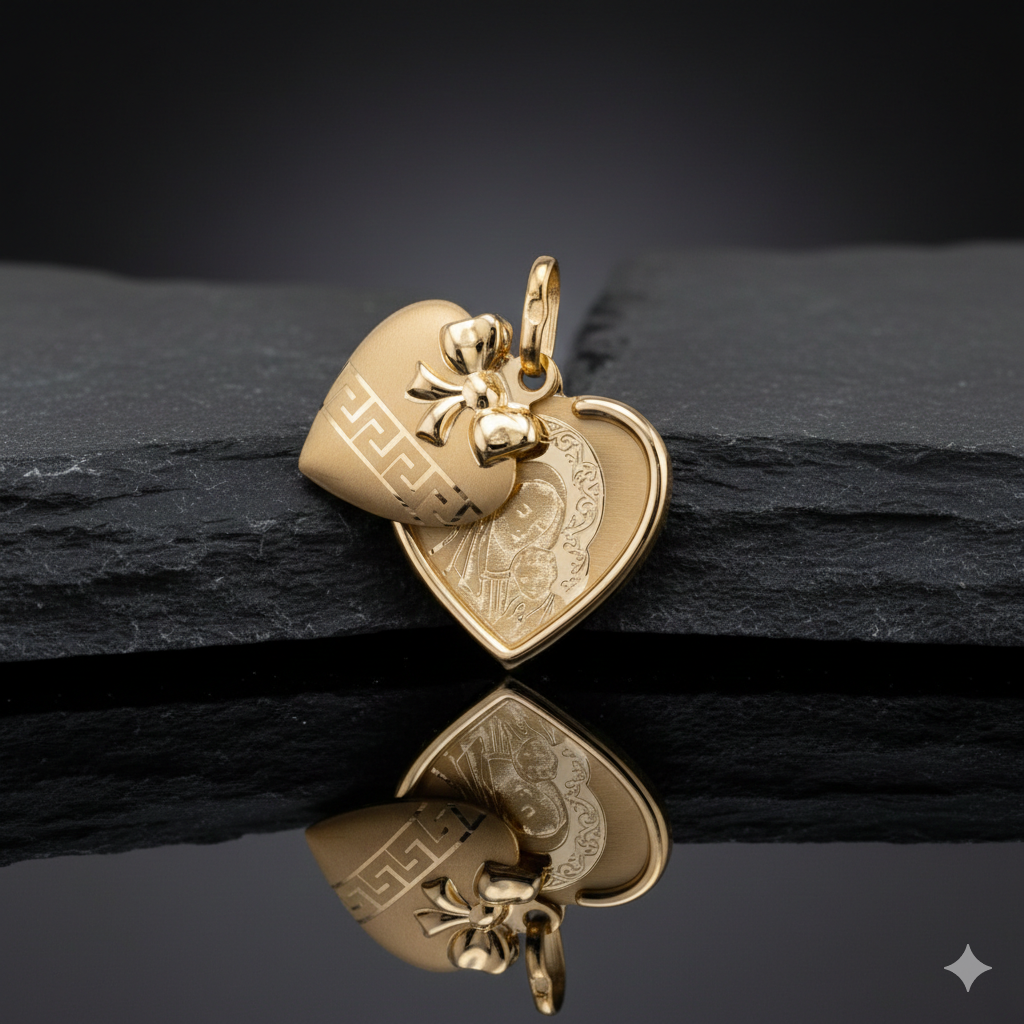 Otwierany medalik w kształcie serca to wyjątkowy symbol miłości, wiary i duchowej opieki. W jego wnętrzu znajduje się wizerunek Matki Boskiej z Dzieciątkiem, przedstawiający macierzyńską czułość oraz bezwarunkową ochronę.