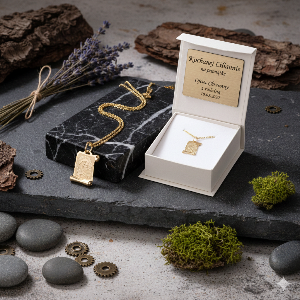 Każdy komplet tworzony jest z myślą o trwałości i duchowym znaczeniu. To złota pamiątka wiary, która może towarzyszyć dziecku przez całe życie jako znak opieki Matki Bożej.