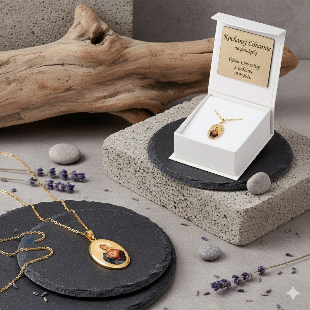 Medalik z tym wizerunkiem noszony jest jako znak zawierzenia, ochrony i matczynej obecności Maryi w życiu dziecka – od pierwszych sakramentów aż po dorosłość.