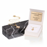 Zestaw zapakowany jest w ozdobne pudełeczko prezentowe z możliwością dodania indywidualnej dedykacji grawerowanej laserowo na eleganckiej, laminowanej tabliczce umieszczonej wewnątrz opakowania.